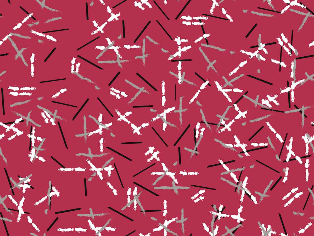 Perfekt für Außen- und Innenseiten von Taschen, Rucksäcken und Sporttaschen. Der Print zeigt eine verspielte, unregelmäßige Linienstruktur — wie mit Bleistift gezeichnet.