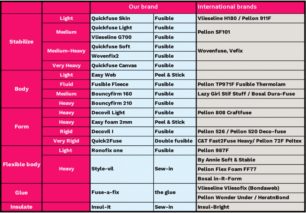- Quickfuse Skin, Quickfuse Light, Vlieseline G700, Wovenfix2