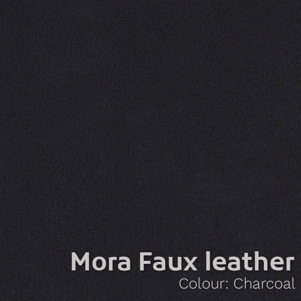 Mora kunstleer is een hoogwaardig kunstleer met een katoenen achterkant. Het materiaal voelt zacht en soepel aan, heeft weinig glans en een subtiele gespikkelde structuur. In grotere vlakken benadert het sterk de look en feel van echt leer.
