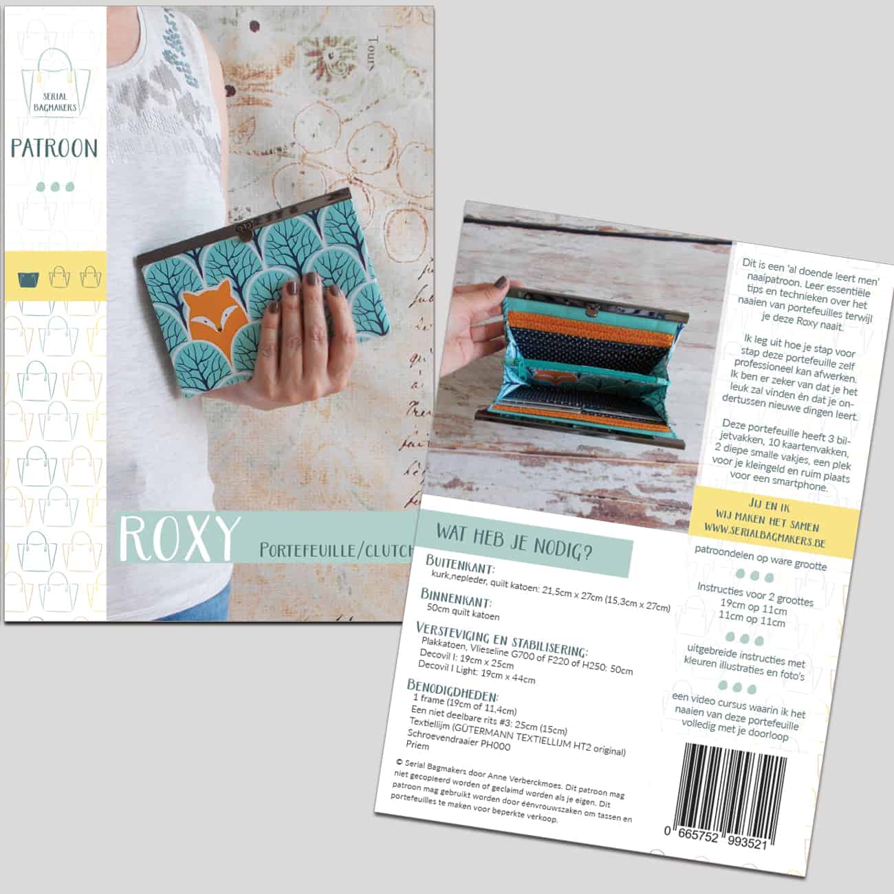 - Buitenstof: 24,1 x 26,7 cm (voor de kleine Roxy heb je een stuk nodig van 15,3 x 26 cm)