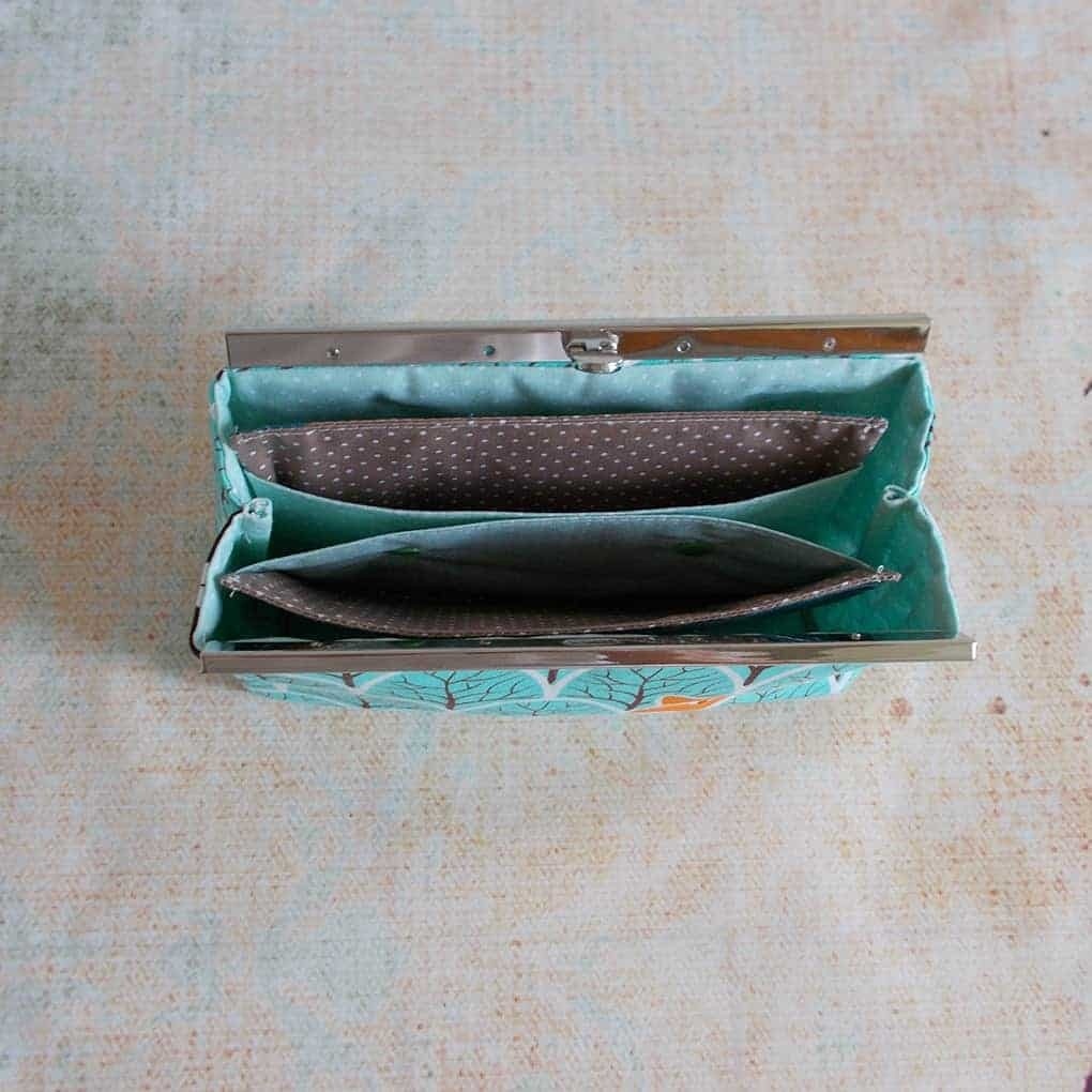 Twee patronen in één: een elegante beugelpouch met verfijnde afwerking én een compacte organizer voor geld, munten en kaarten.